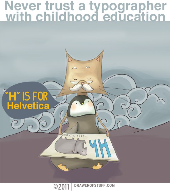 “helvetica!” said baby penguin into the electric telephone, “the sign is in helvetica!”