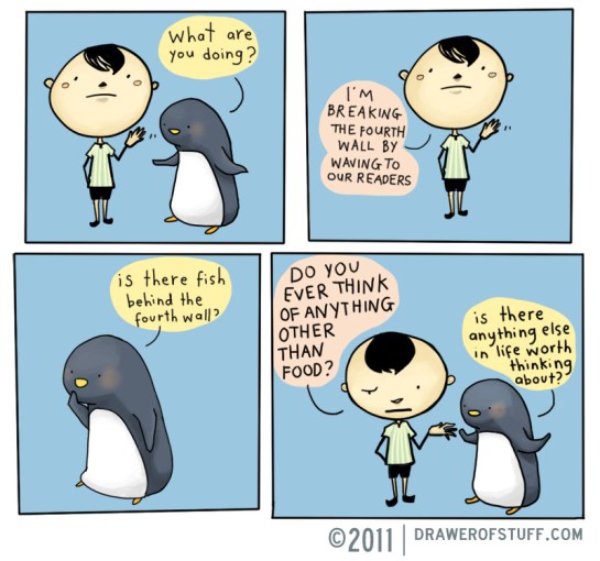 20110805comics Leave a comment almost breaking the fourth wall share the love: Click to email a link to a friend (Opens in new window) Email Click to share on Facebook (Opens in new window) Facebook Click to share on X (Opens in new window) X Click to share on Tumblr (Opens in new window) Tumblr Click to share on Pinterest (Opens in new window) Pinterest Like Loading... Related penguinsphilosophy