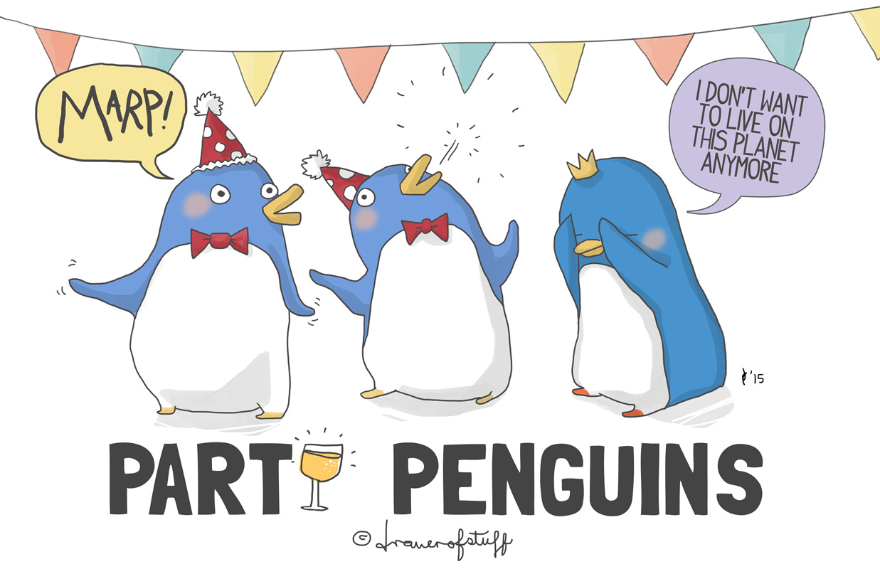 20150613illustrations Leave a comment i am a party pooper in a world of party penguins. sometimes all this excitement is too much for me and i just want to curl up alone on my penguin couch. share the love: Click to email a link to a friend (Opens in new window) Email Click to share on Facebook (Opens in new window) Facebook Click to share on X (Opens in new window) X Click to share on Tumblr (Opens in new window) Tumblr Click to share on Pinterest (Opens in new window) Pinterest Like Loading... Related penguins