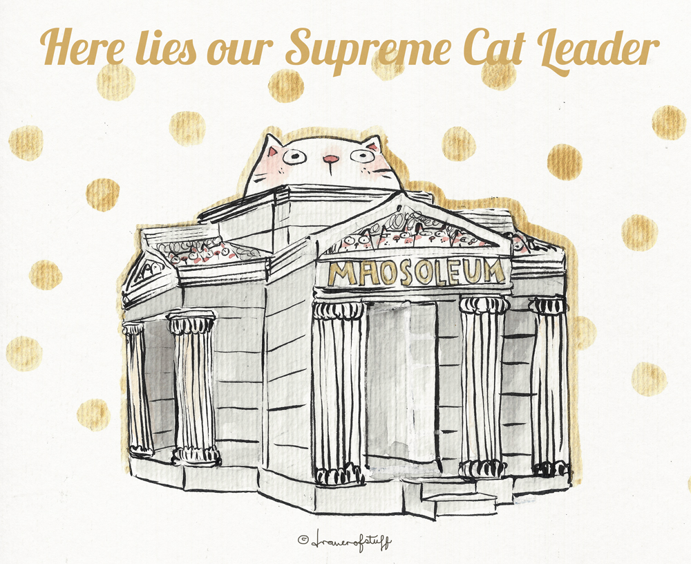 20160806comics Leave a comment where do feline dictators go after they die? They are buried in a maosoleum. share the love: Click to email a link to a friend (Opens in new window) Email Click to share on Facebook (Opens in new window) Facebook Click to share on X (Opens in new window) X Click to share on Tumblr (Opens in new window) Tumblr Click to share on Pinterest (Opens in new window) Pinterest Like Loading... Related catslifepuns