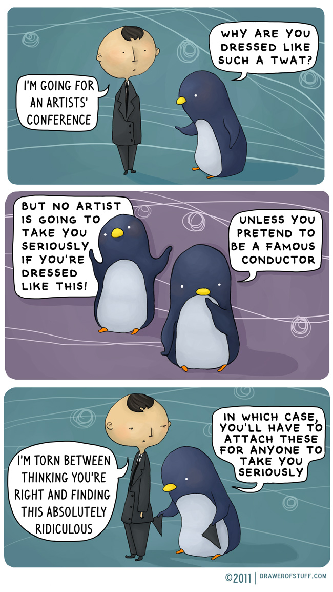 how to wear a suit in a sea of artists without looking like a doofus 20111028comics Leave a comment caveat: if you’re using the coat-tails trick, do not introduce yourself as ashkenazy share the love: Click to email a link to a friend (Opens in new window) Email Click to share on Facebook (Opens in new window) Facebook Click to share on X (Opens in new window) X Click to share on Tumblr (Opens in new window) Tumblr Click to share on Pinterest (Opens in new window) Pinterest Like Loading...